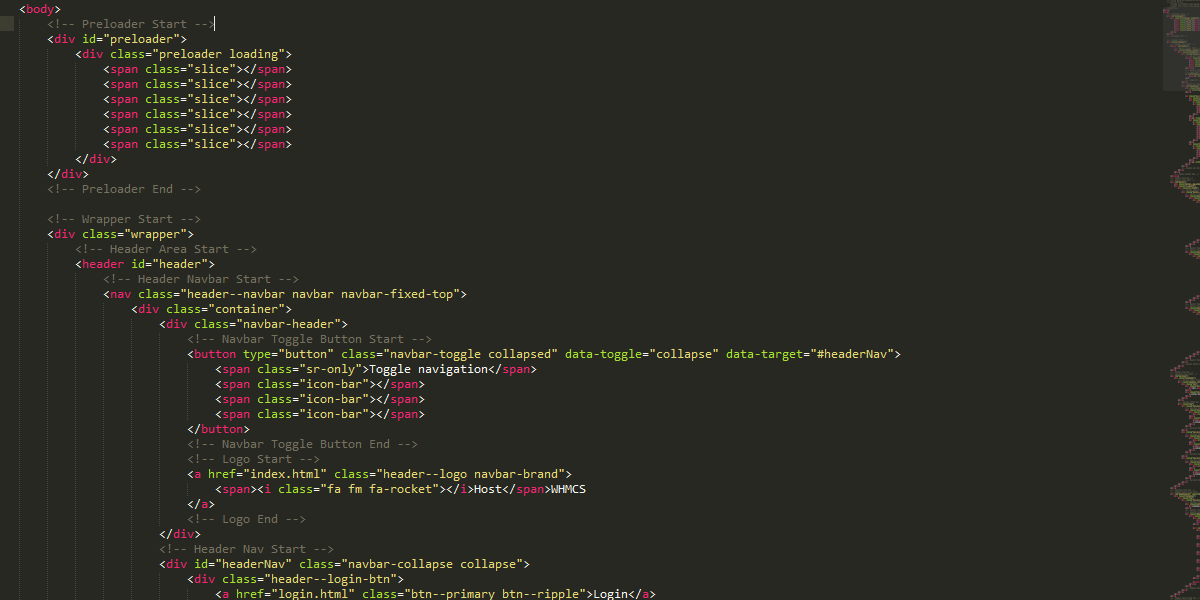 The "HostWHMCS" template is a responsive HTML template based on Bootstrap 3.3.7. The structure based on a flexible grid that lets you change HTML pages quickly and logically with a nestable system.