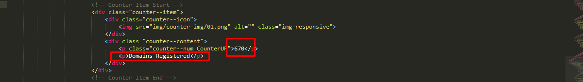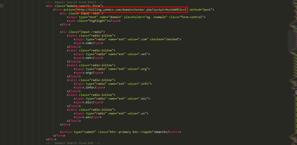 2. Find the comment "<!-- Domain Search Area Start -->"